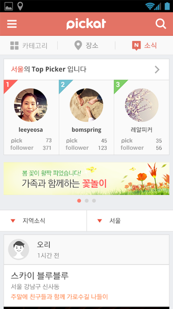 Pickat ยังช่วยให้คุณสามารถจัดการและแบ่งปันสถานที่ที่คุณชื่นชอบกับผู้อื่นได้ คุณสามารถสร้างรายการสถานที่ที่คุณชื่นชอบของคุณเองได้ และแอปจะแนะนำสถานที่ที่ตรงกับความต้องการของคุณโดยอัตโนมัติ นอกจากนี้ ฟีเจอร์ geofencing ที่ฉลุยของแอปนี้รวมถึง 207 โซนฮอตเทม เช่น Garosu-gil และ Samcheong-dong ซึ่งจะแสดงข้อมูลแบบเรียลไทม์เกี่ยวกับสถานที่ที่คุณสนใจ