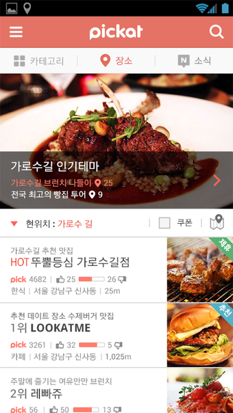 ด้วย Pickat คุณสามารถค้นหาร้านอาหารที่ดีที่สุดและสถานที่ที่ตรงกับความต้องการของคุณได้อย่างง่ายดาย แอปมีแท็บหลักสามแท็บ รวมถึงหมวดหมู่ สถานที่ และข่าว ซึ่งช่วยให้คุณค้นหาสิ่งที่คุณกำลังมองหาได้อย่างรวดเร็วและง่ายดาย แท็บหมวดหมู่ช่วยให้คุณสามารถเรียกดูสถานที่ยอดนิยมและเทรนด์ต่างๆ ตามธีม ในขณะที่แท็บสถานที่จะแสดงสถานที่ที่ดีที่สุดรอบตัวคุณโดยอิงตามตำแหน่งที่ตั้งของคุณ แท็บข่าวมีรีวิวและคำแนะนำจากผู้ใช้ท้องถิ่นและคนดัง ทำให้คุณสามารถค้นพบสถานที่ใหม่ได้อย่างง่ายดาย